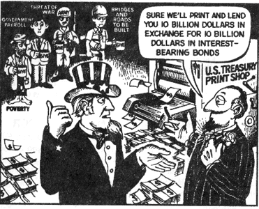 The same Bankers who in the early 1930s had no loans for peacetime houses, food and clothing, suddenly had unlimited billions to lend for army barracks, K-rations and uniforms.